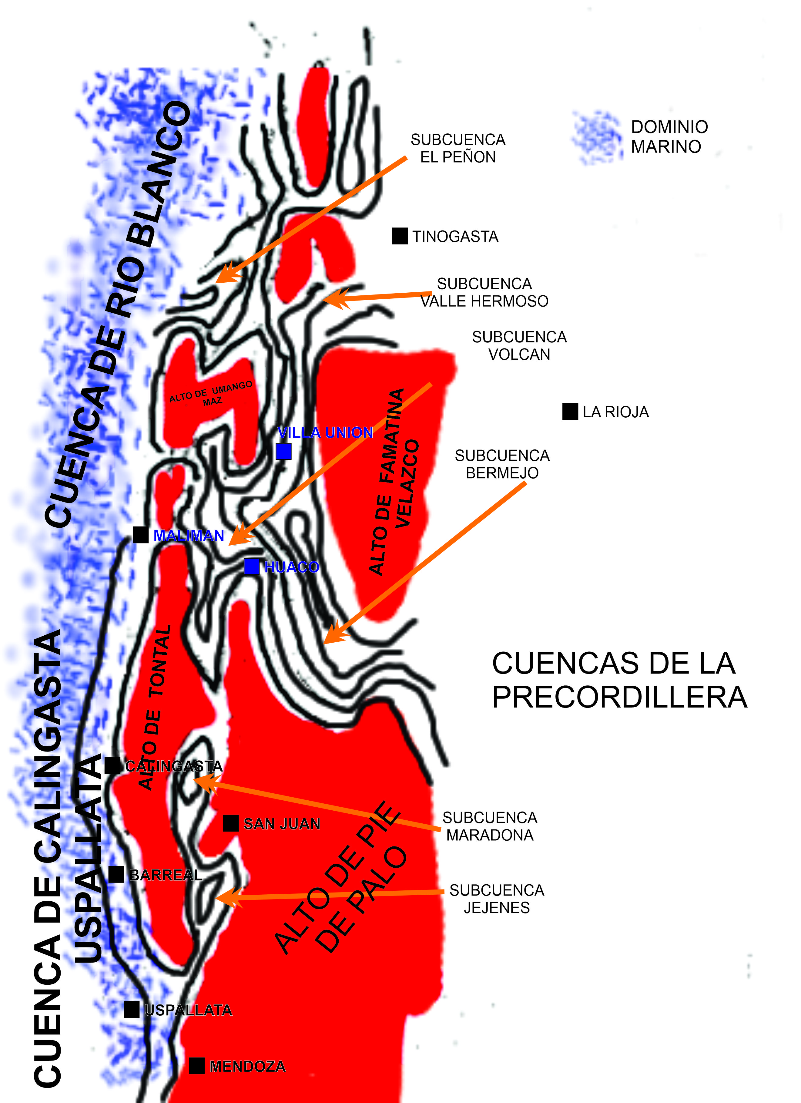 subcuencas de la de Uspallata-Iglesia tal como fuera propuesto