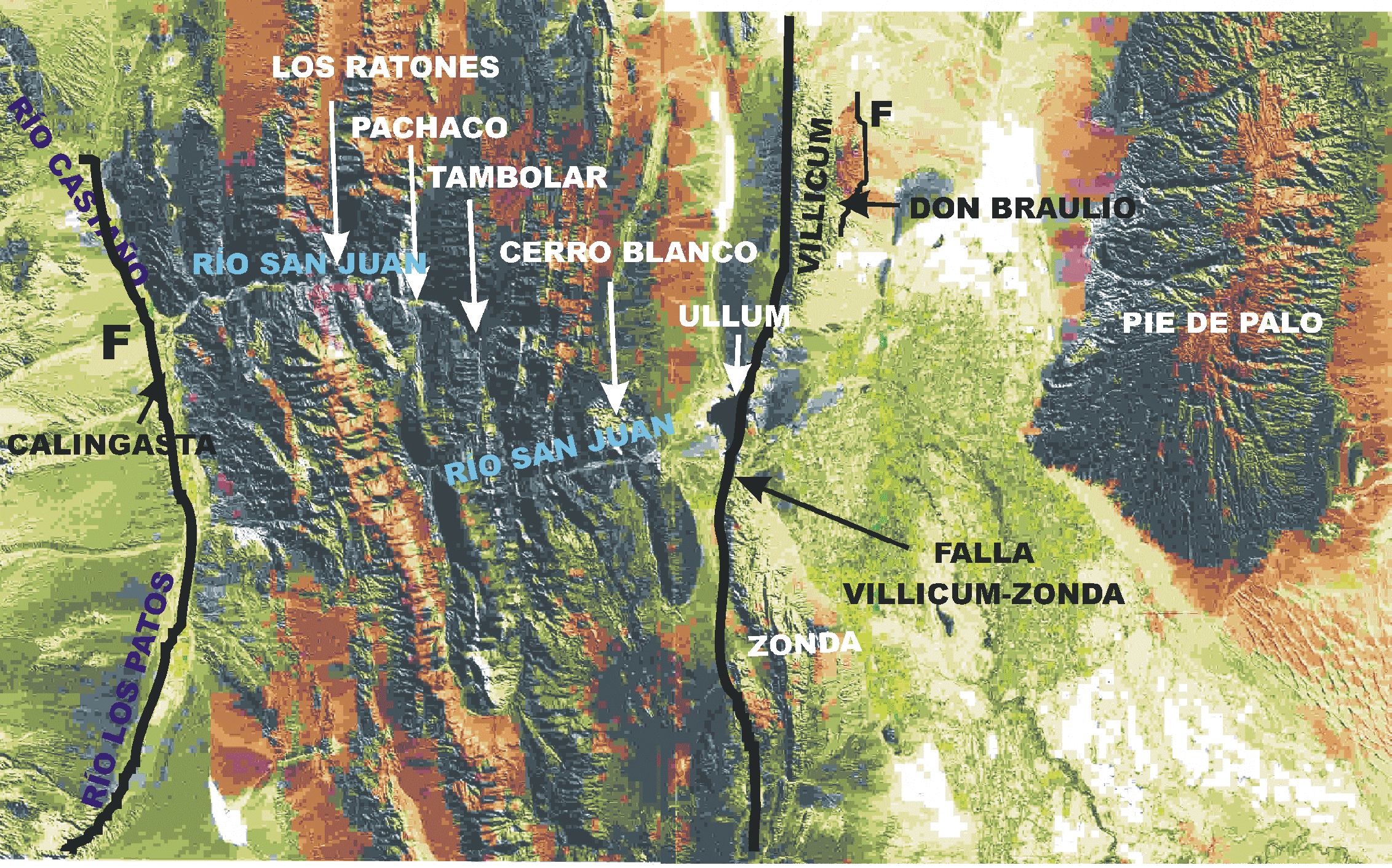 parte norte de la Precordillera y del flanco oriental de la